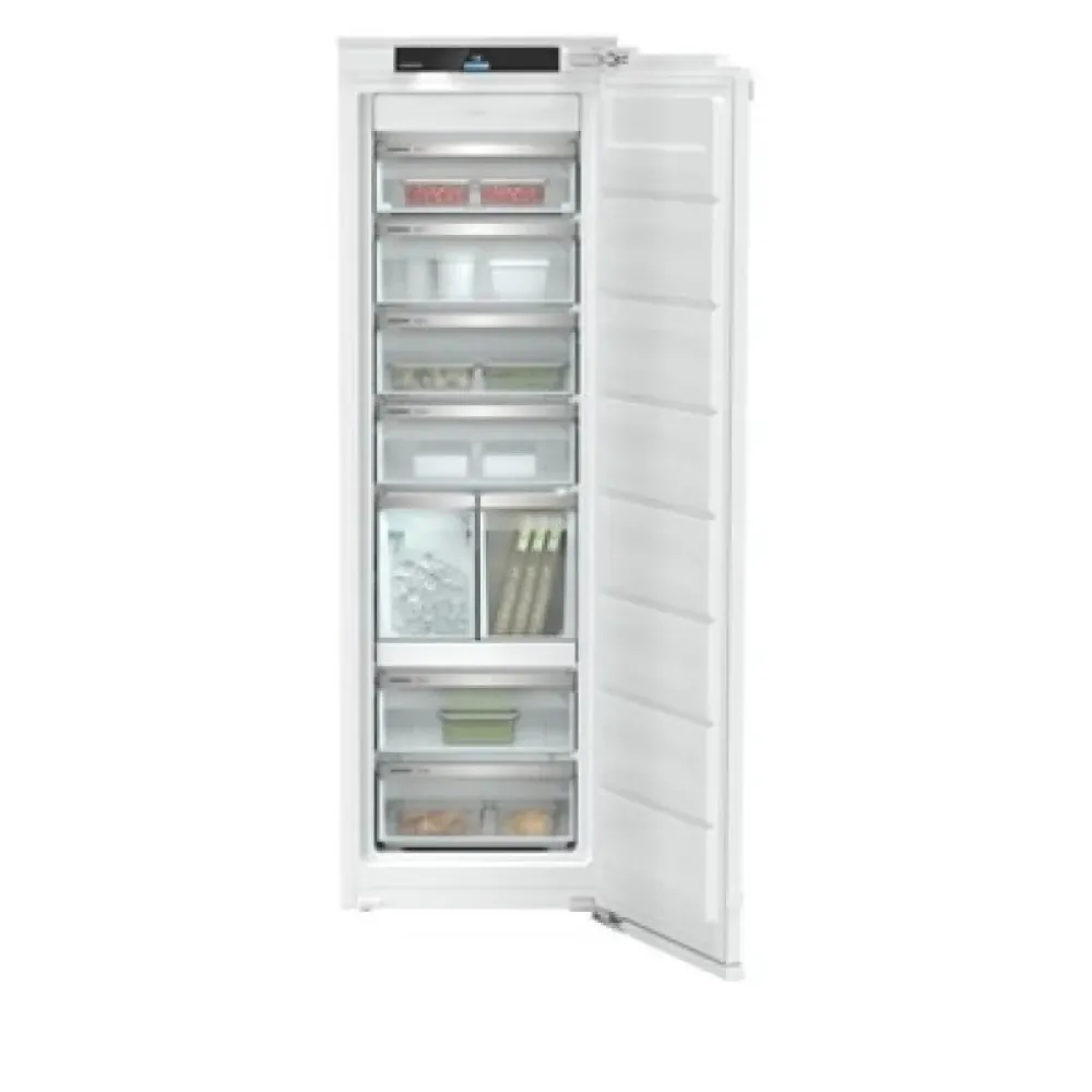 Built-in freezer with IceTower and AutoDoor technology Liebherr SIFNAd 5188 Peak NoFrost, total capacity of 213 l, energy efficiency class D, door unit: fixed door, right-hand hinges, AutoDoor, built-in SmartDeviceBox, touch display, ice maker with fixed water connection, LED lighting. IceMaker technology, SoftSystem, VarioSpace, SuperSilent, LED freezer lighting. Niche dimensions: height/width/depth 177.2 - 178.8 / 56 - 57 / 55.0 cm.